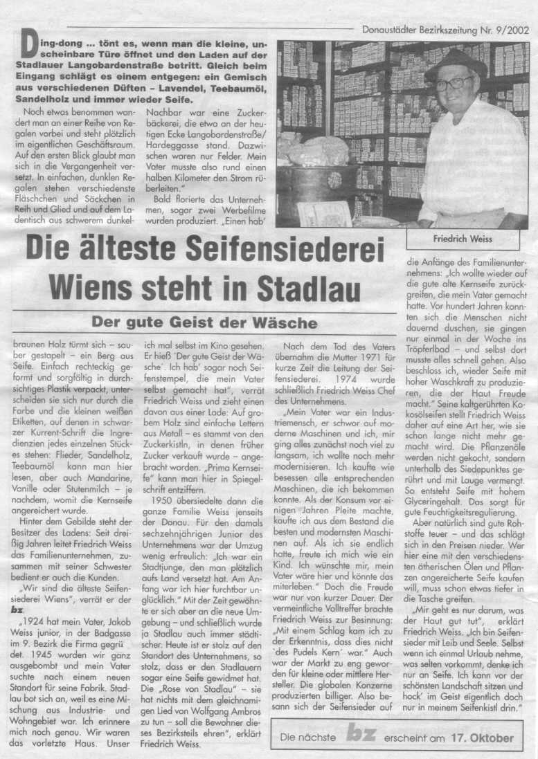 Der folgende Artikel erschien in der Donaustädter Bezirkszeitung Nr. 9/2002