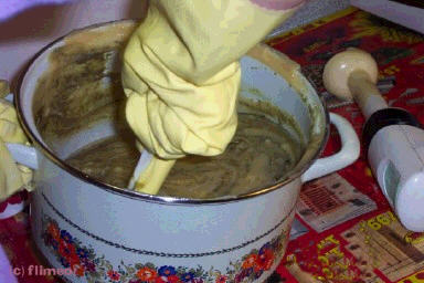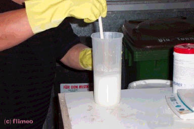 Hier wird noch einmal die Lauge durchgerührt. An den