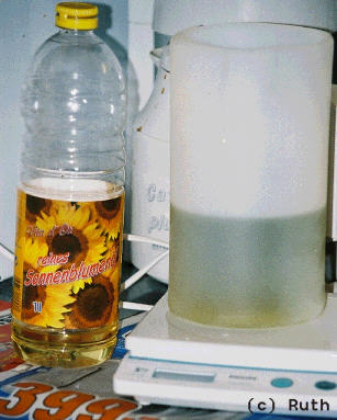 So, jetzt ist die Lauge fast schon im Öl. Ines macht das