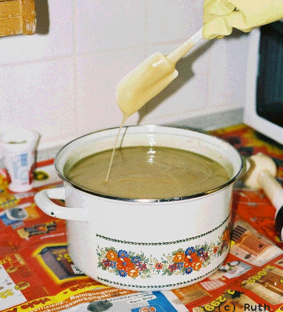 eingerührt, mittlerweile nur mehr von Hand weil die Seife durch das