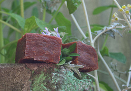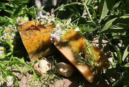 schöner Patchouliduft, mit gemahlenen Patchouliblättern in der Seife. Extrapflege